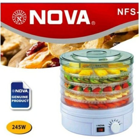 میوه خشک کن نوا مدل NFS-9009FD یکی دیگر از محصولات با کیفیت نوا می باشد.برند نوا در تولید اسپرسوسازها بسیار خوب عمل نموده و اینک محصول جدیدی را به بازار عرضه نموده است. خانم های خانه دار می توانند با استفاده ازاین میوه خشک کن ، انواع میوه و سبزی ها را خشک کنند. این میوه خشک کن بدلیل قیمت مناسب و کارایی بالا در حال حاضر به عنوان یکی از پرفروش ترین مدلهای میوه خشک کن در بازار بوده که انتخب زیادی از مشتریان می باشد. میوه خشک کن نوا مدل NFS-9010DFD علاوه بر این که قدرت فوق العاده ای در خشک کردن میوه ها دارد میتوانید سبزیجات و همچنین گل ها را خشک کند. این دستگاه دارای پنج طبقه بوده که میتوانید همزمان چند میوه را با هم خشک کنید که بهتر است قطر میوه ها پنج میلی متر باشد، قدرت موتوری این دستگاه 245 وات است.