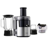 پارچ مخلوطکن و آسیابی که به همراه این آبمیوهگیری عرضه میشوند، در کنار دستگاه اصلی، یک مجموعه سهکاره را تشکیل میدهند. با استفاده از این محصول، در هر زمان به آبمیوهی طبیعی و خوشطعم خانگی، اسموتیهای فیبردار و سالم، پودر قهوه باکیفیت که از دانههای تازه قهوه بهدست آمده است، ادویههای تازه و... دسترسی خواهید داشت.
