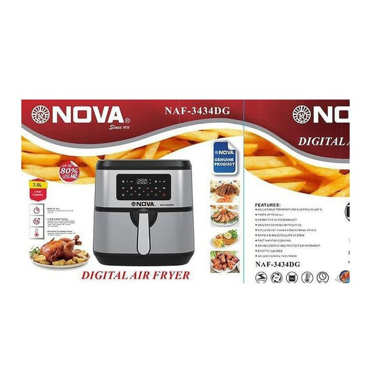 سرخ کن نوا مدل 3434 ظرفیت پخت غذا برای 5 تا 6 نفر دارد و میتوان انواع مواد غذایی را با این سرخ کن طبخ نمود. سرخ کن بدون روغن یکی از انقلابیترین محصولات برقی است که در جهان تولید شد. این محصول فوق العاده، با کمترین میزان روغن، غذایی سالم میپزد و با به گردش درآوردن هوای داغ در داخل باعث تبخیر مولکولهای آب موجود در مواد غذایی میشود. این فرایند سبب میگردد که مواد غذایی از داخل به خوبی بپزند و از بیرون ترد و لذیذ شوند. برندهای گوناگونی انواع سرخ کن با توان و ظرفیتهای گوناگون را تولید نمودهاند، سرخ کن نوا نیز یکی از انواع این محصولات است که با قیمت مناسبتری به فروش میرسد.