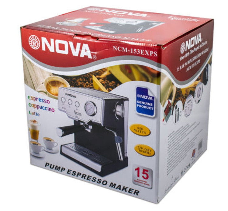 اسپرسوساز نوا مدل NCM-153 با جنس بدنه استیل و طراحی مدرن، ظاهر بسیار زیبایی را به خود گرفته است. مخزن این دستگاه 1.6 لیتری است که برای تولید بخار لازم است مقدار لازم در آن آب بریزید. این دستگاه با پودر قهوه، بهترین اسپرسو ها برای شما آماده می کند. این دستگاه بعد از جوشیدن آب و آماده شدن اسپرسو به دلیل داشتن سیستم خاموشی خودکار، به صورت اتوماتیک خاموش می شود. با استفاده از اسپرسو ساز نوا قادر به تهیه کاپوچینو و شیر گرم هستید.
