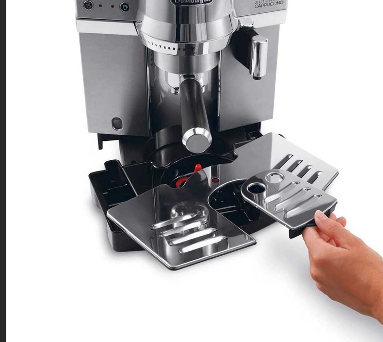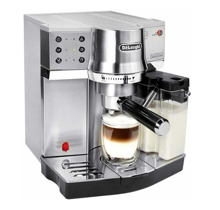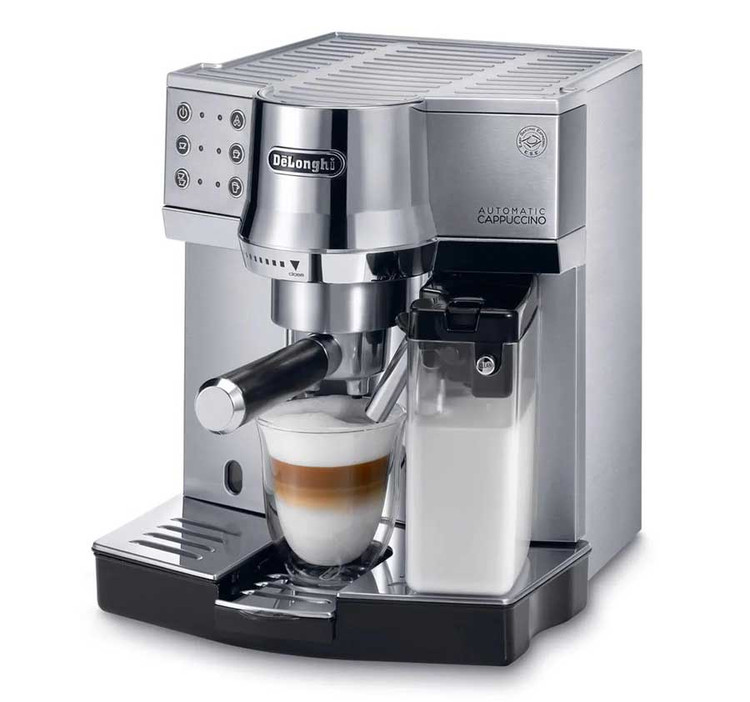 دلونگی (Delonghi) برندی از کشور ایتالیا (خاستگاه اسپرسو) است که علاوه بر ساخت اسپرسو ساز های فوق العاده با کیفیت، توجه ویژه ای به طراحی محصولات خود می کند و اسپرسو ساز های دلونگی با طراحی های فوق العاده زیبایی ساخته می شوند. اسپرسو ساز دلونگی EC 850M از آن دسته محصولاتی است که دلونگی با وسواس و تمرکز زیادی به طراحی و جلوه بصری آن پرداخته است. دلونگی در بدنه این اسپرسو ساز از جنس استیل استفاده کرده و رنگ بندی آن نیز تمام استیل است. مخزن شیر اسپرسو ساز EC 850M در سمت راست دستگاه تعبیه شده و گرم کن فنجان دستگاه نیز در سقف دستگاه قرار دارد. پنل کنترل دستگاه با ۶ دکمه شامل «دکمه روشن \ خاموش، تهیه اسپرسو سینگل، اسپرسو دوبل، آبجوش، کاپوچینو و کافه لاته» طراحی شده است. با فشار دادن دکمه تهیه کاپوچینو، دستگاه به صورت اتوماتیک تمام مراحل تهیه این نوشیدنی محبوب را انجام خواهد داد (تهیه فوم شیر و ترکیب آن قهوه به صورت اتومایتک انجام خواهد شد. کلید تهیه کافه لاته نیز به همین شکل عمل خواهد کرد تا ترکیب شدن شیر و قهوه به صورت اصولی انجام شود و این دو نوشیدنی محبوب به شکل استانداردی حاضر شوند. اسپرسو ساز دلونگی EC850 M یک دستگاه فوق العاده اتوماتیک و حرفه ای است و برای استفاده تجاری نیز گزینه مناسب و ایده آلی به شمار می آید.