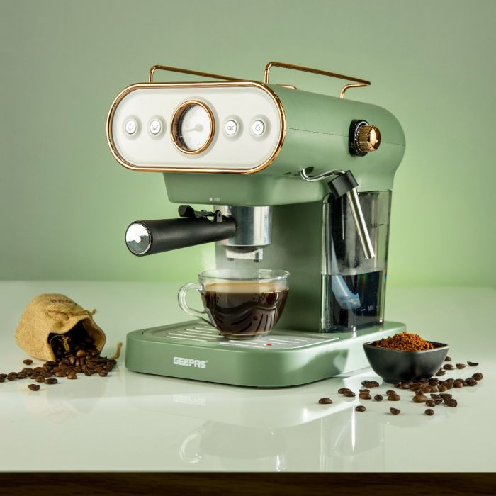 این دستگاه قهوه ساز اسپرسو Geepas با چوب فوم برای کف کردن آسان شیر. بدنه زیبا و محکمی دارد که در طراحی شیک پیچیده شده است و افزودنی عالی برای هر آشپزخانه ای است. دستگاه قهوه ساز دارای دو سیستم کنترل دما مجزا است که با آن می توان فشار آب و بخار را جداگانه کنترل کرد. فشار حرفه ای 19 بار هر بار اسپرسو را با کیفیت باریستا تضمین می کند. با کنترل های قابل تنظیم، می توانید قهوه را مطابق با سلیقه شخصی خود تهیه کنید. مجموعه بخار قابل تنظیم می تواند دسته بخار داخلی را برای بخار دادن یا گرم کردن شیر کنترل کند. اجازه بخار دادن و کف کردن شیر برای کاپوچینو و لاته را می دهد. اسپرسو را همیشه در دمای عالی با سیستم های کنترل دما دم کنید که با آن می توان فشار آب و بخار را به طور جداگانه کنترل کرد.