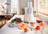 این غذاساز فیلیپس 7310 قادر است توسط طیف وسیعی از تیغه ها، 16 کار مختلف شامل رنده، تکه تکه کردن، قیمه، سالاد ساز، میکسر، ورزن خمیر و ... را انجام دهد. با داشتن چنین ابزاری در آشپزخانه شما تنها توسط یک موتور قادر خواهید بود که بسیاری از نیازهای روزانه آشپزی را با آن انجام دهید. ظرفیت اسمی کاسه غذاساز فیلیپس مدل HR7310 برابر است با 2.1 لیتر اما برای تهیه خمیر شما تنها می توانید از 1.5 لیتر از فضای کاسه را پر کنید  و برای یک خانواده 5 نفره کافی است تا بتوانید انواع خوراکی شامل سالاد، میلک شیک، اسموتی، کوکتل و ... را آماده نمایید همچنین با بهره بردن از موتور قدرتمند 700 وات و تیغه های فوق العاده کارآمد قادر خواهید بود در کمتر از یک دقیقه حجم زیادی از مواد غذایی را آماده نموده سپس سریعا کاسه را در ظرف دیگری تخلیه و دوباره آماده کار کردن گردد.