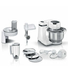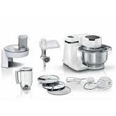 ماشین آشپزخانه بوش مدل MUMS2EW30 با بهترین قیمت، مجهز به ابزار تهیه کیک و شیرینی است و شما به آسانی به وسیله این دستگاه می توانید شیرینی یا کیک خانگی درست کنید. همچنین رنده کردن با دیسکت های رنده در این ماشین امکان پذیر هست. این دستگاه مجهز به چرخ گوشت و مخلوط کن نیز است که در هر خانه ای بسیار پر استفاده و مهم است. همچنین دارای همزن با کاسه از جنس استیل ضد زنگ و ظرفیت 3.8 لیتر است و 4 حالت برای تنظیم سرعت در آن وجود دارد.